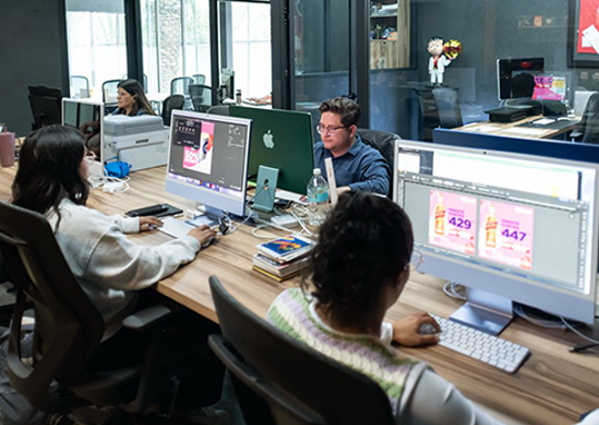 El equipo creativo resuelve de manera diferente para mejorar un producto o servicio, consiguiendo que en cada proyecto el objetivo sea generar ideas y potenciar el valor de nuestros clientes.